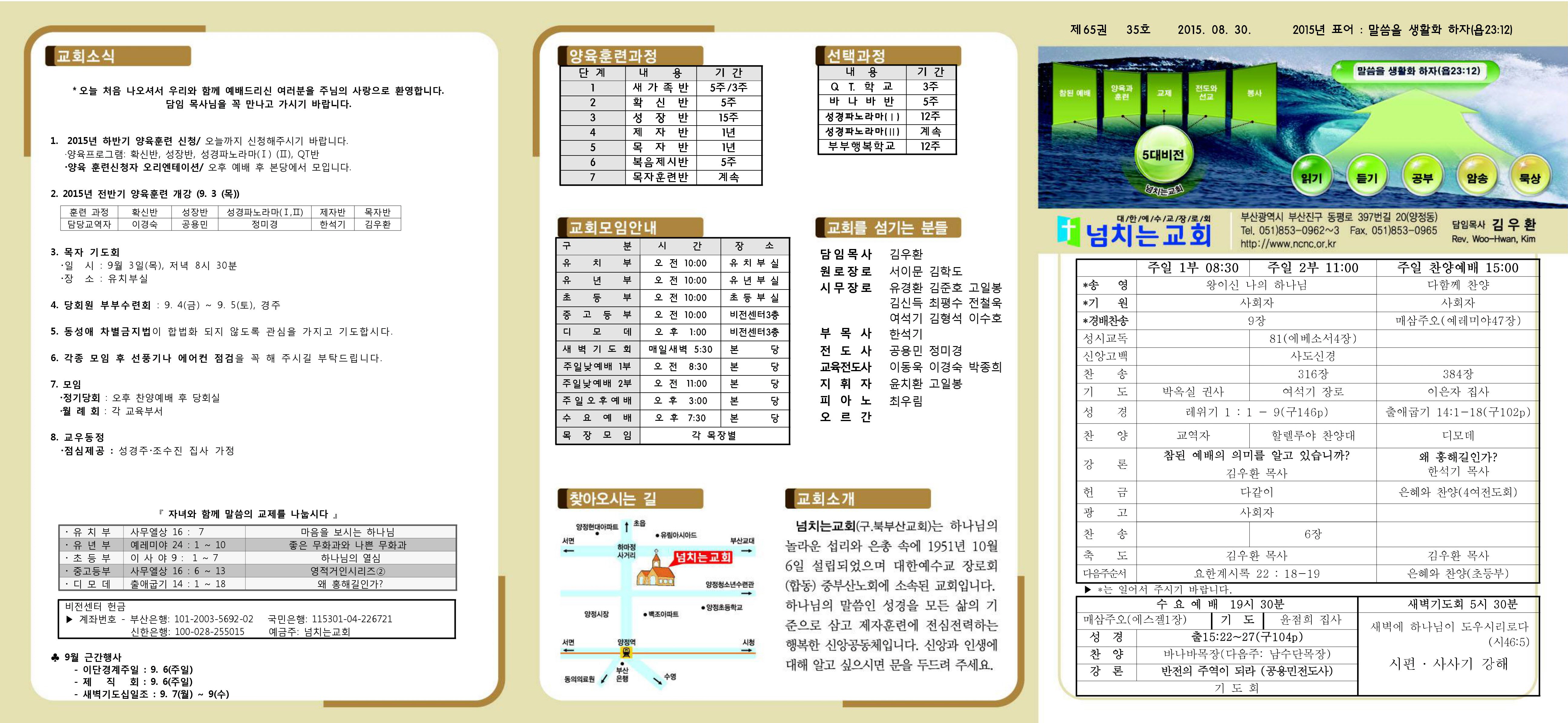 [2015.08.30] 넘치는교회 주보